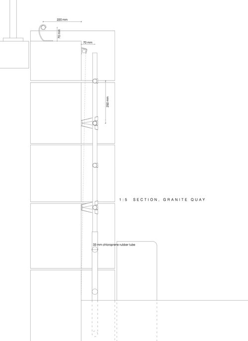 The ladder expresses strength and generosity. It offers a sturdy way up for a person in the water, from its lowest rungs in hard rubber, to its single top rung which stands on top of the quay.